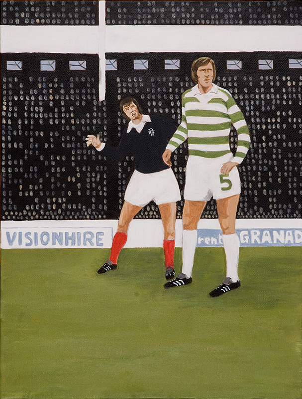 Celtic captain, Billy McNeill and Dundee striker John Duncan can only look on in hope and anticipation.